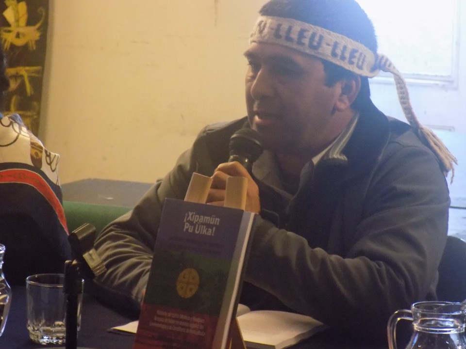 “Son varias las Comunidades del sector del Lago Lleu Lleu que estamos buscando recuperar 3500 hectáreas y por eso estamos haciendo recuperación y control territorial. Vinimos acá para presentar este documento, este libro que se llama “Xipamun pu Ülka”, y es el resultado de una investigación de aproximadamente dos años, que hemos ido haciendo diferentes miembros de las Comunidades de la zona Lavkenche, para dejar en la memoria las razones de que por qué estamos luchando. “Xipamun pu Ülka” quiere decir “Fuera los Codiciosos”, ülka es la palabra mapuche que quiere decir goloso, alguien que no se llena nunca, por eso están tan bien representados los capitalistas con este nombre. Este libro, más que la historia de nuestra lucha, es una compilación de las razones de por qué se está peleando. Se explica cómo es que Bosque Arauco, Forestal Mininco y otras empresas más pequeñas se han hecho dueñas “legales” de este territorio en este último tiempo, y hacemos una historia de cómo llegaron a ser dueños de esto. Ellos dicen “nosotros somos dueños porque tenemos papeles”. Nosotros vemos sus papeles y vamos a los Conservadores de Bienes Raíces e investigamos sus papeles, así llegamos por ejemplo que el territorio que reclamamos fue hasta no hace mucho el Asentamiento Lleu Lleu, antes de eso, por los años 50 fue parte de la Hacienda Tranaquepe . Pero antes de eso, esta Hacienda Tranaquepe formaba parte de unas tierras que había tenido y vendido mucho antes un tipo de apellido Gardenias, seguimos más atrás y llegamos a un tipo que se llamaba Félix Antonio Aguayo, quien en el 1878 inscribió en el Registro de Lebu 4.000 hectáreas en la zona del Lago Lleu Lleu. Y ¿cómo lo hizo?, como lo hizo la mayoría de esta gente: buscaron una persona con rasgos mapuche, que pedían limosna en los pueblos, ya que después de la “Pacificación de la Araucanía”- la guerra de tierra arrasada- habían quedado sin nada, eran miserables, y esta gente los “contrató” para llevarlos ante un notario en Lebu y hacerlos firmar con el dedo o también con el método que se llamaba “a ruego”, donde otra persona firmaba por él, porque no sabían leer ni escribir, así firmaban que estaba vendiendo “derechos”, no propiedad, sobre cierta cantidad de tierras. Así este tipo Félix Aguayo , que era Jefe de la Guardia Blanca, de la Guardia Cívica, se hizo dueño de estas 4.000 hectáreas en la zona del Lago Lleu Lleu. Más adelante, cuando compró los “derechos” Gardenias, este inscribió “propiedad . Así nació el robo de estas tierras mapuche que nosotros estamos reclamando. En el fondo lo que se hizo fue engañar a la gente y comprar algo que no existía, porque este tipo Gardenias vino después con los militares, se instaló aquí y expulsó a toda la gente. Hay un registro que creo que circula en internet, de un lonko, Juan Pablo Coña que cuenta como a su abuelo y bisabuelo los corretearon de La Rinconada. Llegaron un día los militares, los sacaron, los llevaron como animales para el camino y les quemaron sus rukas. Eso fue lo que hizo Gardenias, desocupar esta tierra y hacerse dueño de los derechos que le había vendido Aguayo. Esa explicación es la que está en este libro. Aquí hay datos duros y los corroboramos con sus propios papeles. Este es un libro de primera fuente. Esto que pasó aquí es lo que pasó en todo el territorio mapuche y también en otros territorios. Estas historias nadie las va a escribir, tenemos que escribirlas nosotros mismos (…)"