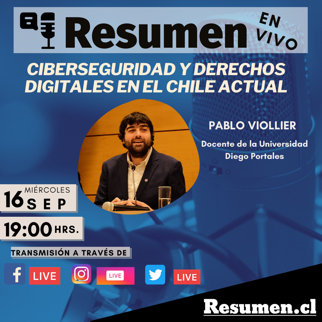 [resumen.cl] En la edición N° 15 de #ResumenEnVivo, conversaremos con el docente de la Universidad Diego Portales, Pablo Viollier, sobre aspectos de ciberseguridad y la situación actual de los derechos digitales en Chile. La transmisión será este miércoles 16 de septiembre a las 19:00 hrs. por las redes de RESUMEN.