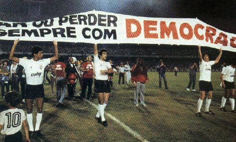 Ahora bien, Sócrates y los demás integrantes de la Democracia Corinthiana tuvieron claro que era impensado una “isla” de democracia en un contexto autoritario y, actuando sobre aquel problema, su mayor impacto fue el ser un bastión de propaganda anti-dictatorial a la vez que un espacio subversivo si se considera el contexto. Y como no, si además este equipo “demócrata” fue parte de la lucha social anti-dictatorial en un país tan futbolizado como violentado. Así pues, rompieron el prejuicio del futbolista ensimismado en su labor dentro del Estadio, hicieron frente a la oposición externa e interna dentro del mismo club y se hicieron parte del llamado a elecciones directas (la famosa campaña “diretas já” desarrollada entre 1984 y 1985), movilizándose para exigir la restitución del derecho a voto universal, la elección del Presidente de la República mediante ese mecanismo y la recuperación de las libertades democráticas robadas por el régimen dictatorial que gobernó Brasil entre 1964 y 1984. Así pues, el Corinthians se las arregló para desafiar a la dictadura dentro y fuera de la cancha, mientras que, en las calles de las principales ciudades brasileñas, los movimientos sociales comenzaban a desbordarse (así como acontecía también en Argentina y Chile) y el movimiento democratizador tomaba mayor fuerza.