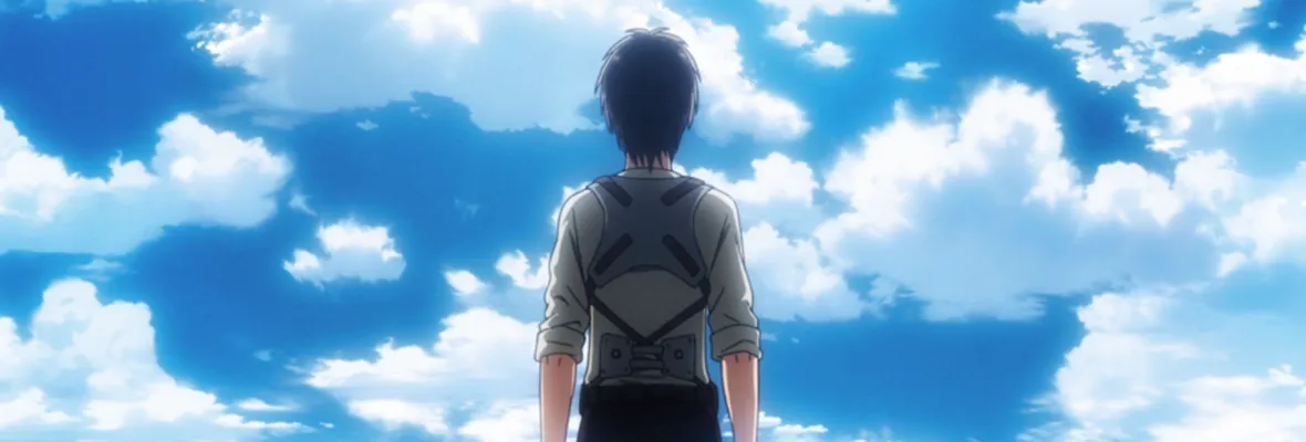 Nuestro protagonista, Eren Jeager, prisionero de la cotidianidad de su mundo, resguardado por enormes murallas que lo protegen de una amenaza apocalíptica, desea por sobre todas las cosas escapar de esta cárcel y encontrar la libertad. La libertad pareciera algo simple, hermosos parajes, comida en abundancia y un acercamiento hacia la verdad de la vida y el mundo, incluso Isayama dibuja a un pequeño Eren flotando sobre las nubes, como reflejo de su espíritu, pero esta visión infantil de la libertad será duramente castigada por la realidad, y es que al final de la oración, esta búsqueda está marcada por la tragedia.