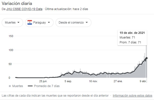 Muertes diarias por Covid19 en Paraguay