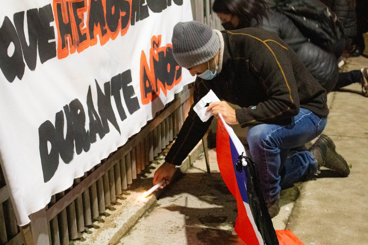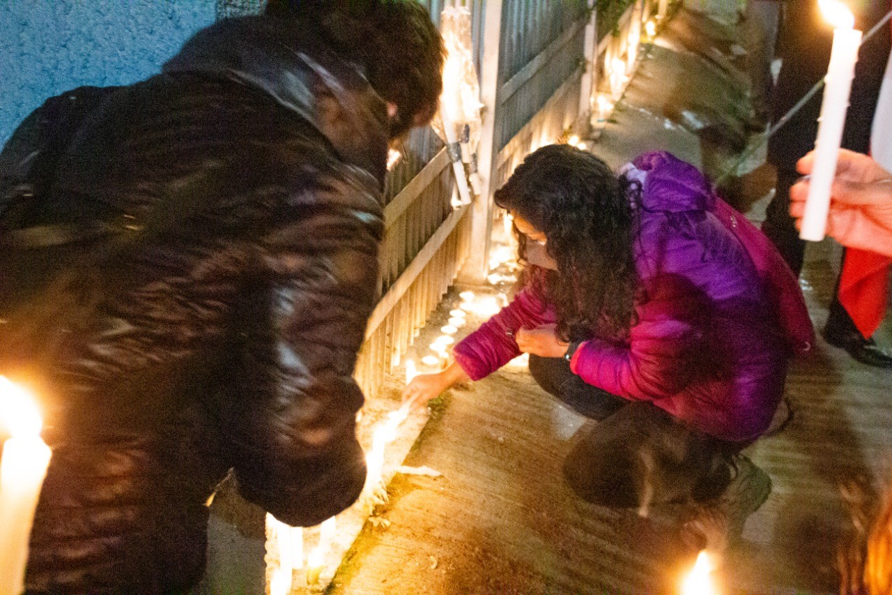En la antesala, la noche del pasado jueves integrantes de la comunidad se acercaron al establecimiento para realizar una velatón , donde también colgaron lienzos y acompañaron la instancia con música y poesía.