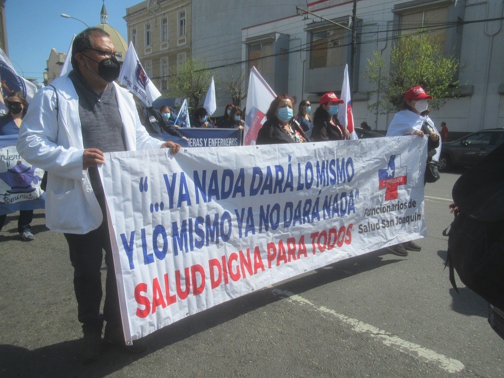 Los trabajadores y las trabajadoras de la salud se reunieron a mediodía en la plaza Victoria para marchar desde allí hasta el Congreso Nacional, por su parte los trabajadores y trabajadoras de la educación se congregaron en la plaza Aníbal Pinto y los trabajadores y trabajadoras del comercio de las grandes tiendas llegaron a protestar a las puertas del Parlamento en Valparaíso. Distintos sectores, distintas demandas, pero un mismo camino de movilización y de lucha.