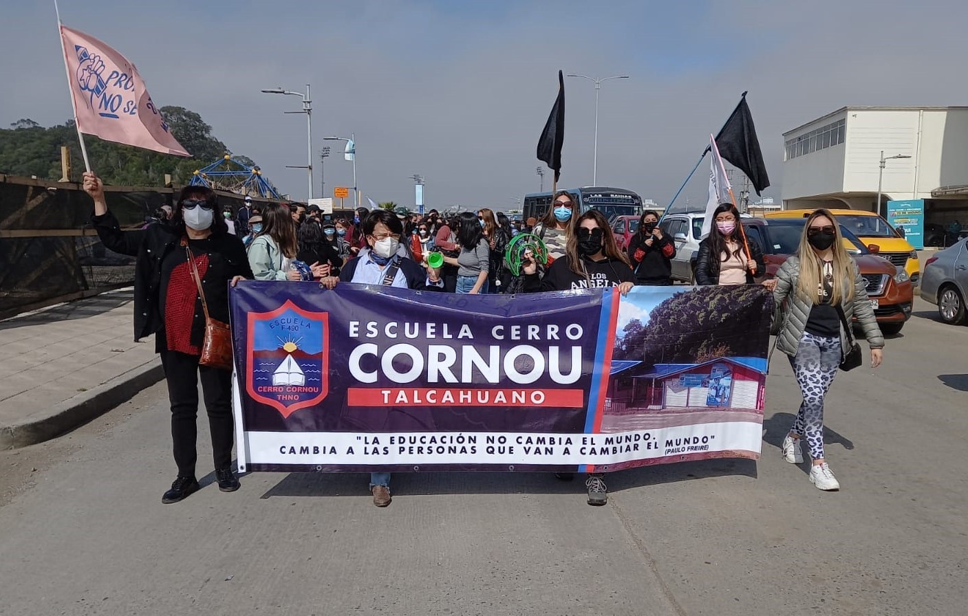 Marcha de trabajadoras/es de la educación en Talcahuano/ Foto: Resumen.