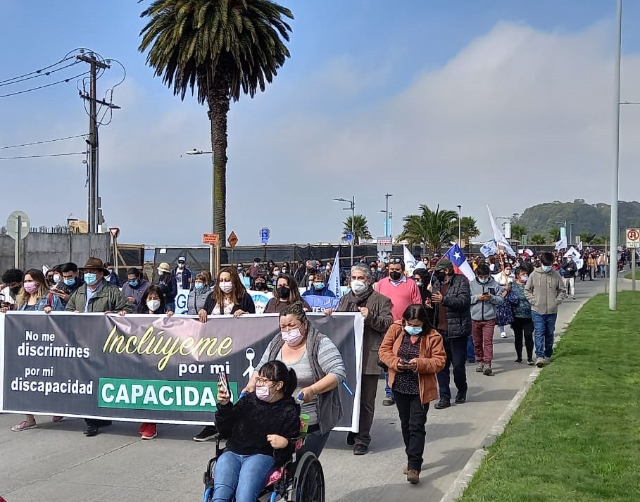En la marcha, el convencional Bastián Labbé se refirió a la crisis de la educación pública en Talcahuano y como podría superarse a través de la Convención Constitucional.