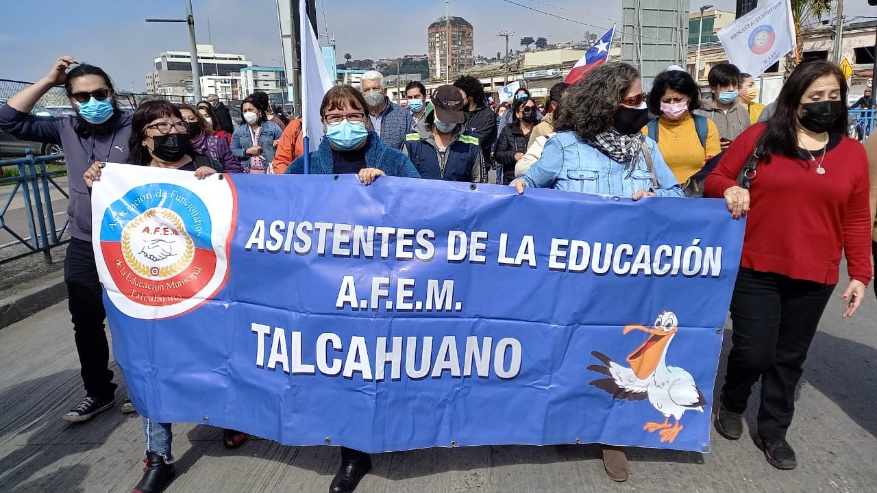 Trabajadoras y trabajadores de la educación municipal marchando en Talcahuano/Foto: Resumen