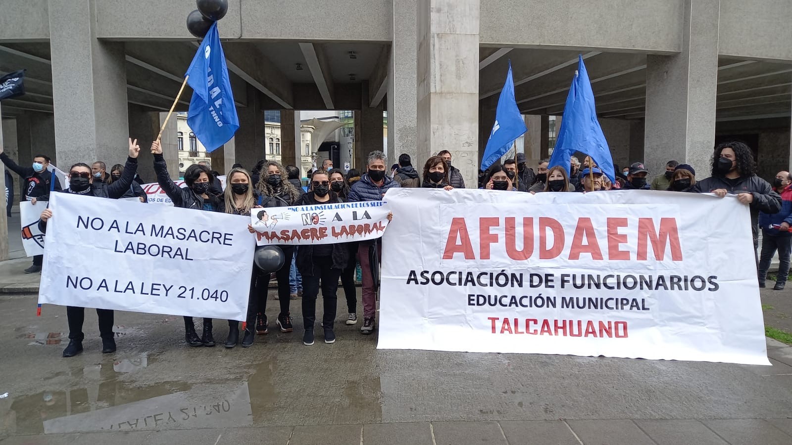Durante este medio día se manifestaron decenas de funcionarios y funcionarias de la educación pública en contra de la implementación de la Ley 21.040, que concretará el traslado de la administración de la educación pública a los Servicios Locales de Educación a nivel nacional.