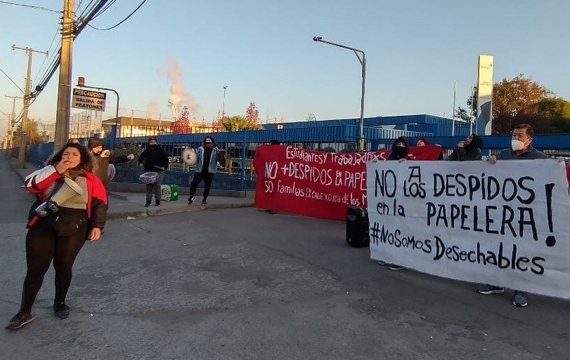 Una nueva protesta realizaron esta mañana, trabajadoras y trabajadores desvinculados de la planta papelera Softy, filial de CMPC (familia Matte) en Puente Alto, debido a la intransigencia de la empresa que insiste en mantener los despidos iniciados en abril. A esto se le suma que pese a haberlos echado, desde la papelera no querrían aceptar los finiquitos exigidos por parte del personal afectado, pese a los años de servicio y al motivo de sus desvinculaciones.