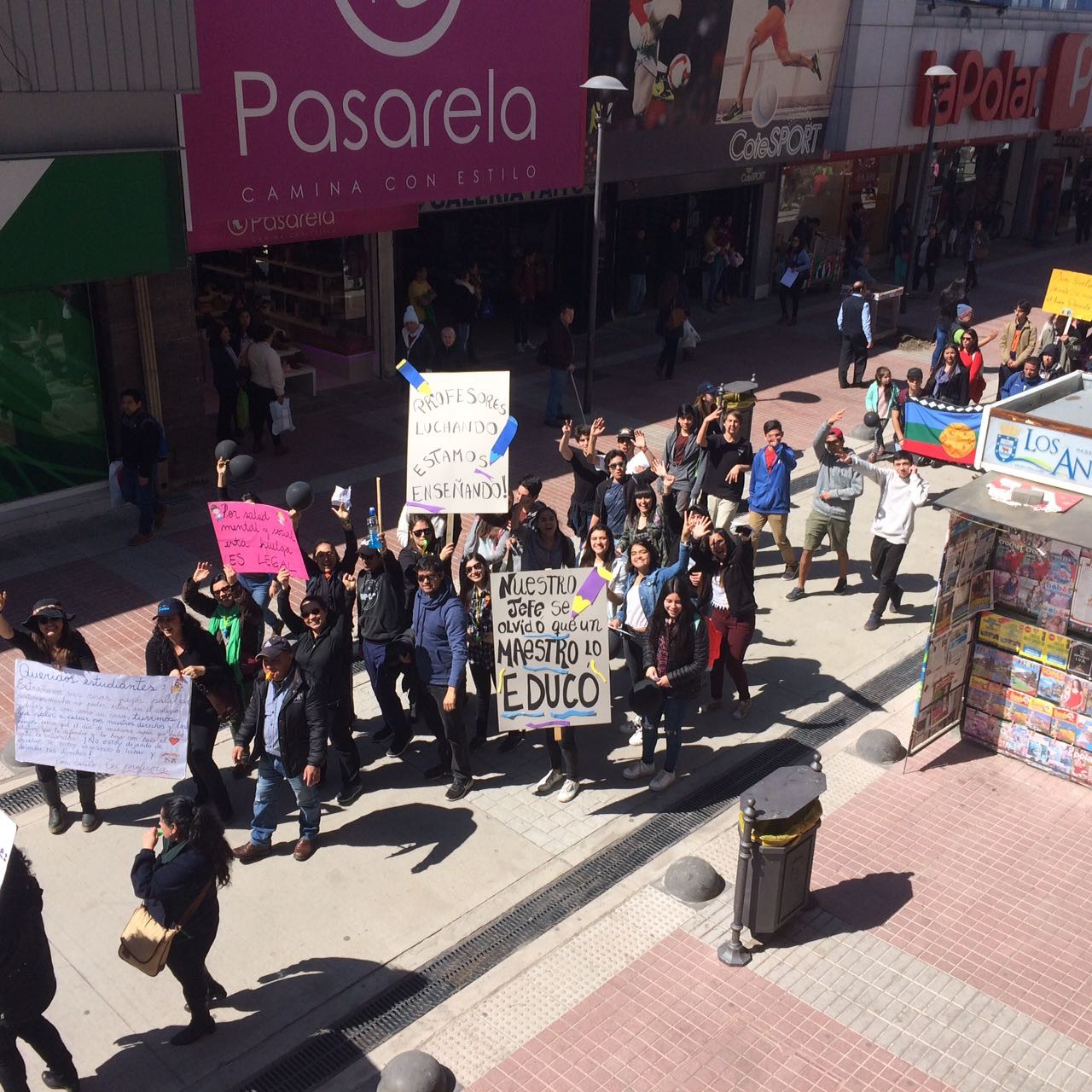 Durante la marcha los huelguistas recibieron apoyo de autoridades locales, de las Asistentes de Educación Municipal y del Colegio de Profesores de Los Ángeles.