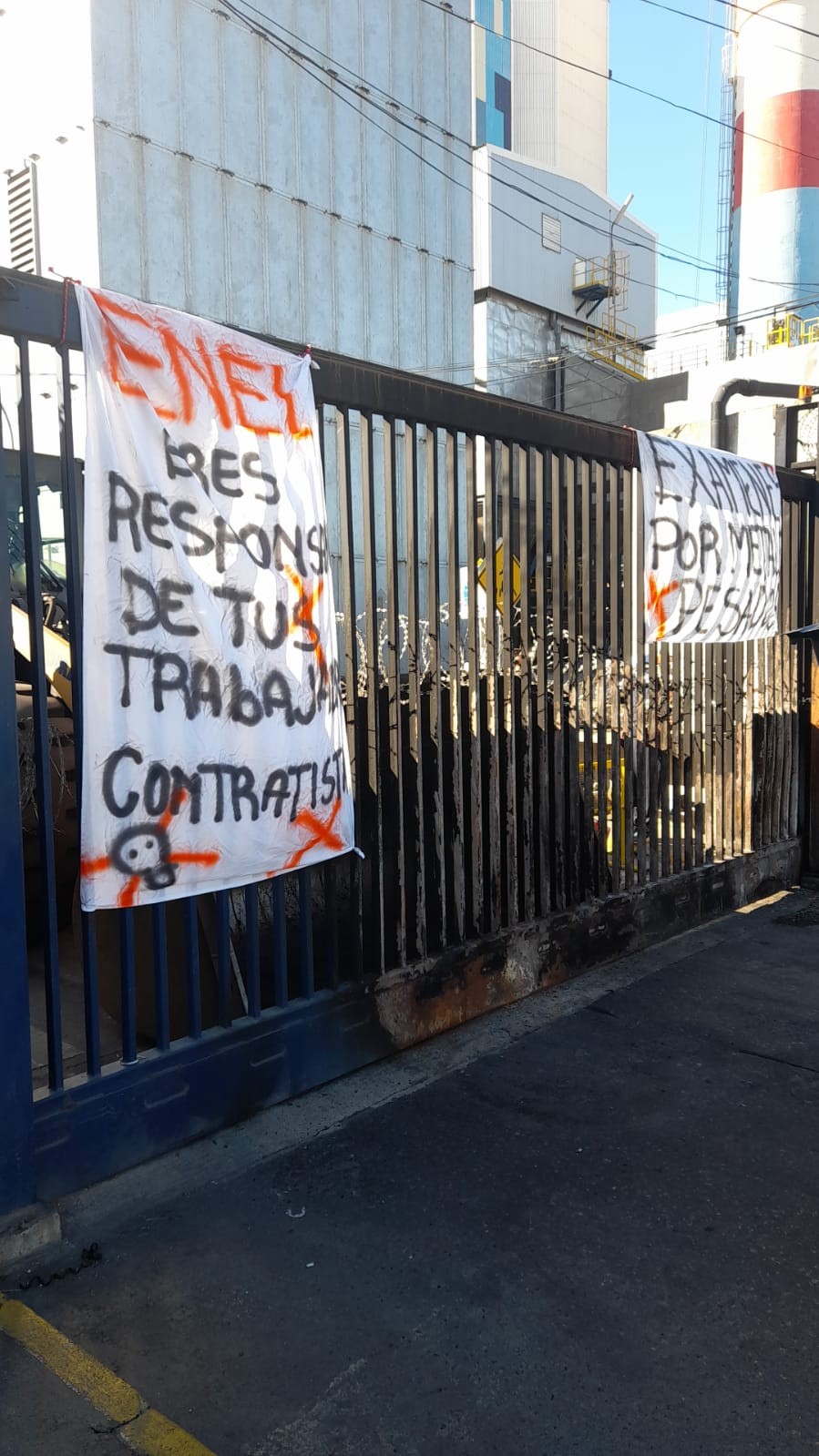 Trabajadores subcontratados de Enel protestando contra la negativa de la empresa a realizarles exámenes médicos. Foto: Cedida a Resumen.
