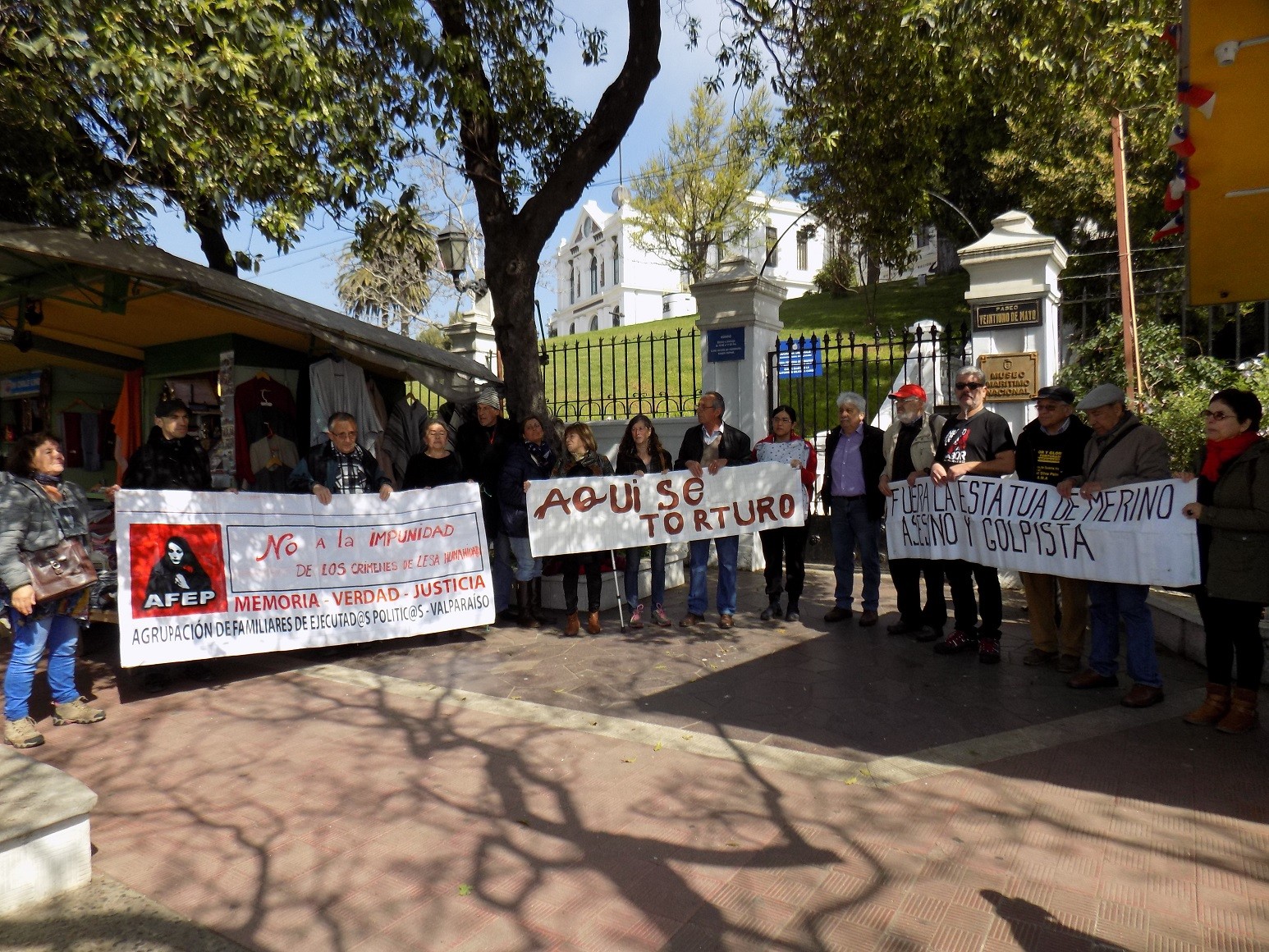 En agosto de ese año, el 2013, se hicieron una serie de actividades y coincidió además con el aniversario del MIR en el que el Colectivo A Babor, en donde participaba Arturo Pérez del restaurant Bésame Mucho, junto a la Agrupación 5 de Octubre realizaron una actividad en la Sala de Extensión de la Universidad de Valparaíso con el historiador Sandoval sobre la historia del Movimiento de Izquierda Revolucionaria. Allí salió el tema de qué hacer en relación con la presencia de esta estatua. Habíamos conversado en el Colectivo Cine Fórum con Juan y Nelson que el 11 de septiembre podríamos ir y funar esta estatua, entonces en esta reunión propusimos esa acción de protesta y así fue que partimos ese 11 de septiembre del 2013.