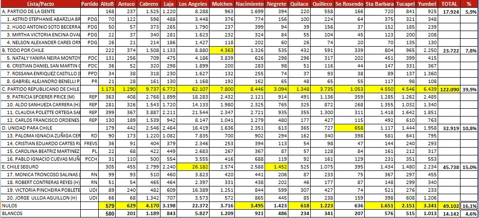 El segundo dato relevante es el triunfo del Partido Republicano, en todas las comunas de la región del Biobío, de la misma forma que triunfo el rechazo el pasado 4 de septiembre.