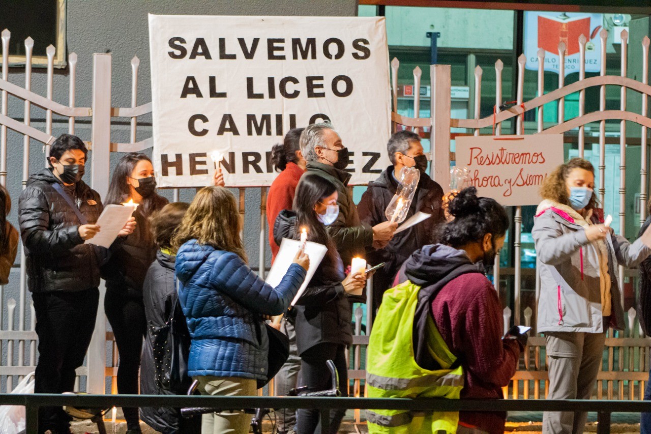[caption id="attachment_99344" align="aligncenter" width="1280"] Velatón en las afueras del Liceo Camilo Henríquez | Fotografía: enviada a RESUMEN[/caption]