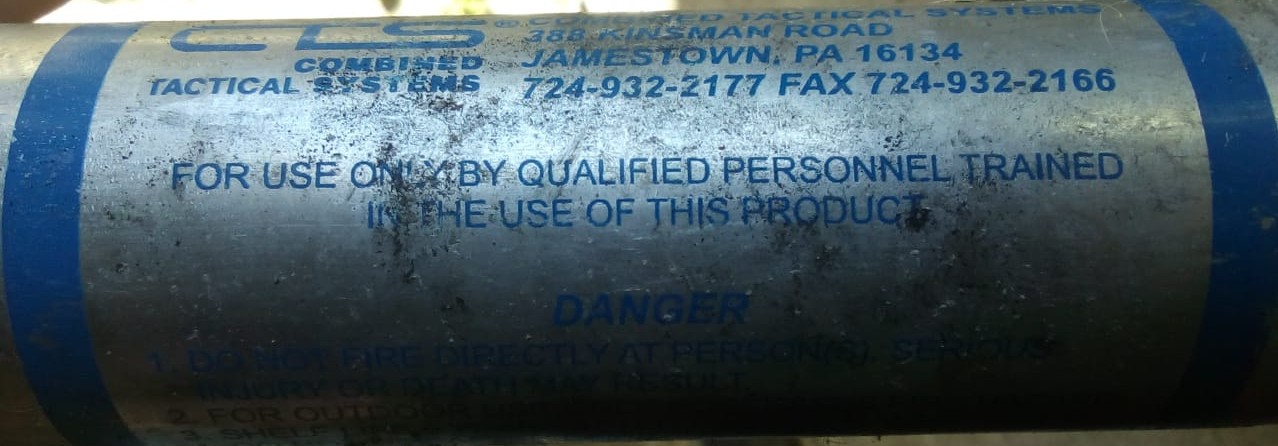 El cartucho de las lacrimógenas CS fabricadas por la empresa Combined Tactical Systems también señala: "Para usar solamente por personal calificado y entrenado en el uso de este producto".