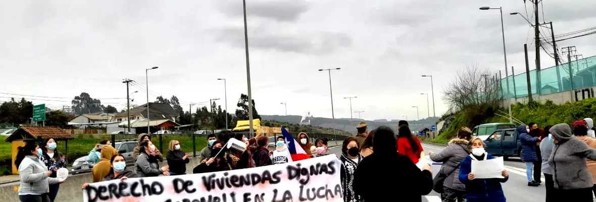 [resumen.cl] Este viernes se registró una protesta de pobladoras/es de Altos de Coronel, provocando una congestión vehicular notoria en la carretera aledaña. Los motivos de la movilización están en las múltiples falencias presentadas por sus departamentos, entregados hace menos de seis años y sometidos a reparaciones recientemente, indican. Este martes 24 de agosto realizarán una marcha hasta las oficinas de la Seremi de Vivienda en Concepción.