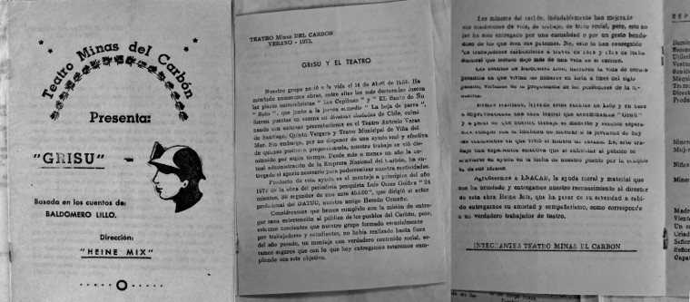Fui a hablar con el gerente general de Enacar, que luego de ser nacionalizada se llamaba así, Empresa Nacional del Carbón, Isidoro Carrillo del Partido Comunista. Le pedí que me dejara bajar a la mina para conocer el laboreo y él se negó rotundamente diciéndome que “esto no es juego, todos los compañeros nunca saben si van a volver, es muy peligroso”. Así que hablé con la gente de la actividad y les dije que me iba a ir, porque si no bajaba a la mina cómo podría hacer un trabajo sobre los mineros sin conocer realmente en qué consistía ser minero. Entonces fue una delegación a hablar con el Isidoro y me autorizó bajo la firma mía de que, pasara lo que pasara, ellos no se hacían responsables por mi vida. La cosa es que empecé a bajar a la mina con ellos y ahí organicé, a partir de los cuentos de Baldomero Lillo, una obra mostrando cómo era la vida de los mineros antes de la Unidad Popular y cómo empezaba a ser cuando los trabajadores chilenos empezaban a ser los dueños de su producción. Así fue como montamos una obra que le pusimos Grisú, por el gas que en Lota y Coronel había provocado tantas muertes. Ésta se estrenó en Lota, después hicimos una gira en micro y llegamos hasta Chuquicamata y a mi me daba no sé qué, porque cuando íbamos pasando el desierto de Atacama, los pobres compañeros del sur, acostumbrados a la lluvia, estaban anonadados totalmente, les costaba creer que eso era Chile también.