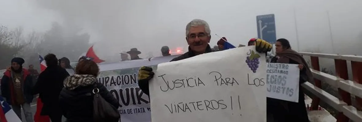 [resumen.cl] Este lunes, viñateros y viñateras de las regiones del Biobío y de ñuble interrumpieron el tránsito en tres puntos de la Ruta del Itata, a la altura de Florida, Ránquil y de la localidad de Cocharcas. El motivo de la protesta es la crítica situación económica y productiva en que se encuentran producto de las prácticas ejercidas por el oligopsonio controlado por las empresas Concha y Toro, San Pedro y Santa Rita, las cuales determinan precios de compra de su uva a niveles inferiores a los costos de producción. Esta situación, aunque ha sido expuesta en sucesivas ocasiones ante autoridades políticas de diversos gobiernos,es cada vez más gravosa, pues no se han impuesto medidas tendientes a establecer un control de precios y así garantizar condiciones mínimas para subsistir de tal actividad.