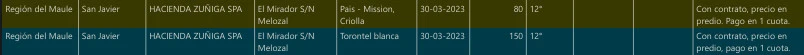 La vocera de la Coalición, denuncia que sorprendentemente, en la región del Maule, figura como poder comprador la empresa Hacienda Zúñiga SPA, de los mismos controladores del poder comprador que en la vendimia pasada adquirió uva a viñateros/as del valle del Itata, sin pagarla hasta ahora. De acuerdo a la organización, son más de 150 productores afectados por este incumplimiento, sin que autoridades del Estado intervengan en favor de la ejecución de los pagos. En conversación con Resumen, viñateros recordaron que varios de ellos decidieron vender a la entonces Sociedad Agrícola Zúñiga Ltda. porque tenía precios de unos $10 por sobre otros poderes compradores.
