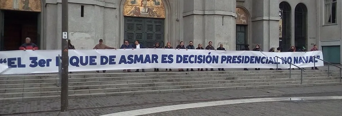 Por Juan Contreras Jara / resumen.clEste jueves, trabajadores de Asmar se manifestaron a las afueras de la catedral de Concepción, en respuesta a la decisión del gobierno de no construir el 3º dique de la empresa en Talcahuano. Los manifestantes expresaron que la construcción del proyecto fue una promesa de campaña del presidente Piñera y sería éste, como primer mandatario, quien debe decidir si se concreta o no el proyecto y no la Armada de Chile.