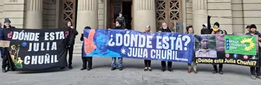 Este 7 de agosto, en el frontis del Ministerio de Relaciones Exteriores de Chile, cinco de las organizaciones que integran el Espacio Día a Día por Julia Chuñil...